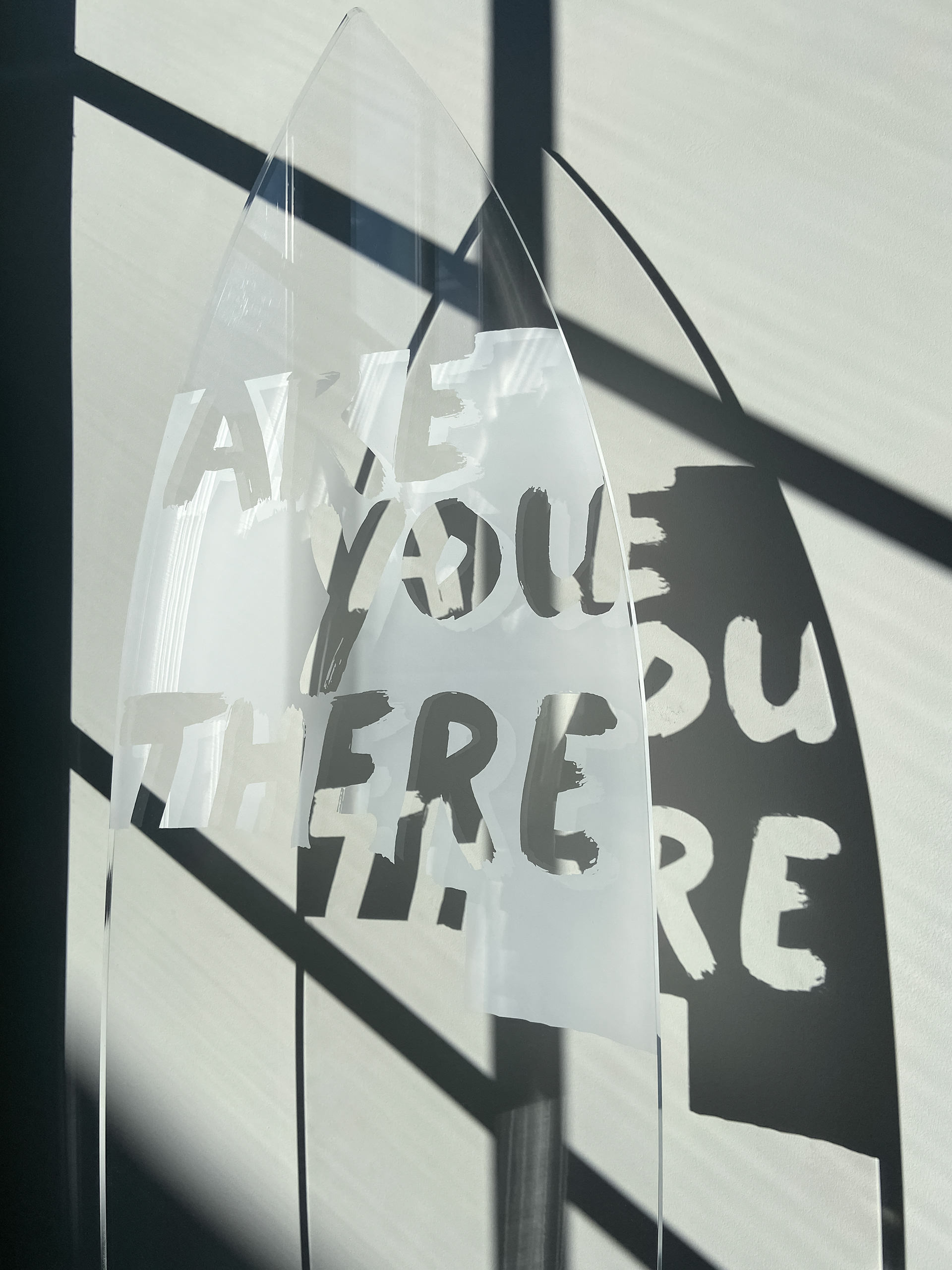 Laser engraved transparant acrylic glass set in a stainless steel mount | 2021 | 213 x 50 x 1,5 cm | Edition of 12 | €4700
