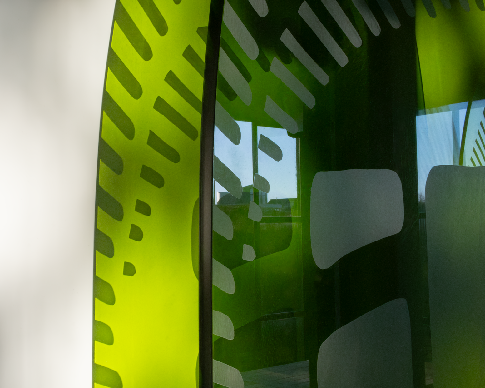 Laser engraved transparant acrylic glass set in a stainless steel mount | 2021 | 213 x 50 x 1,5 cm | Edition of 12 | €4700