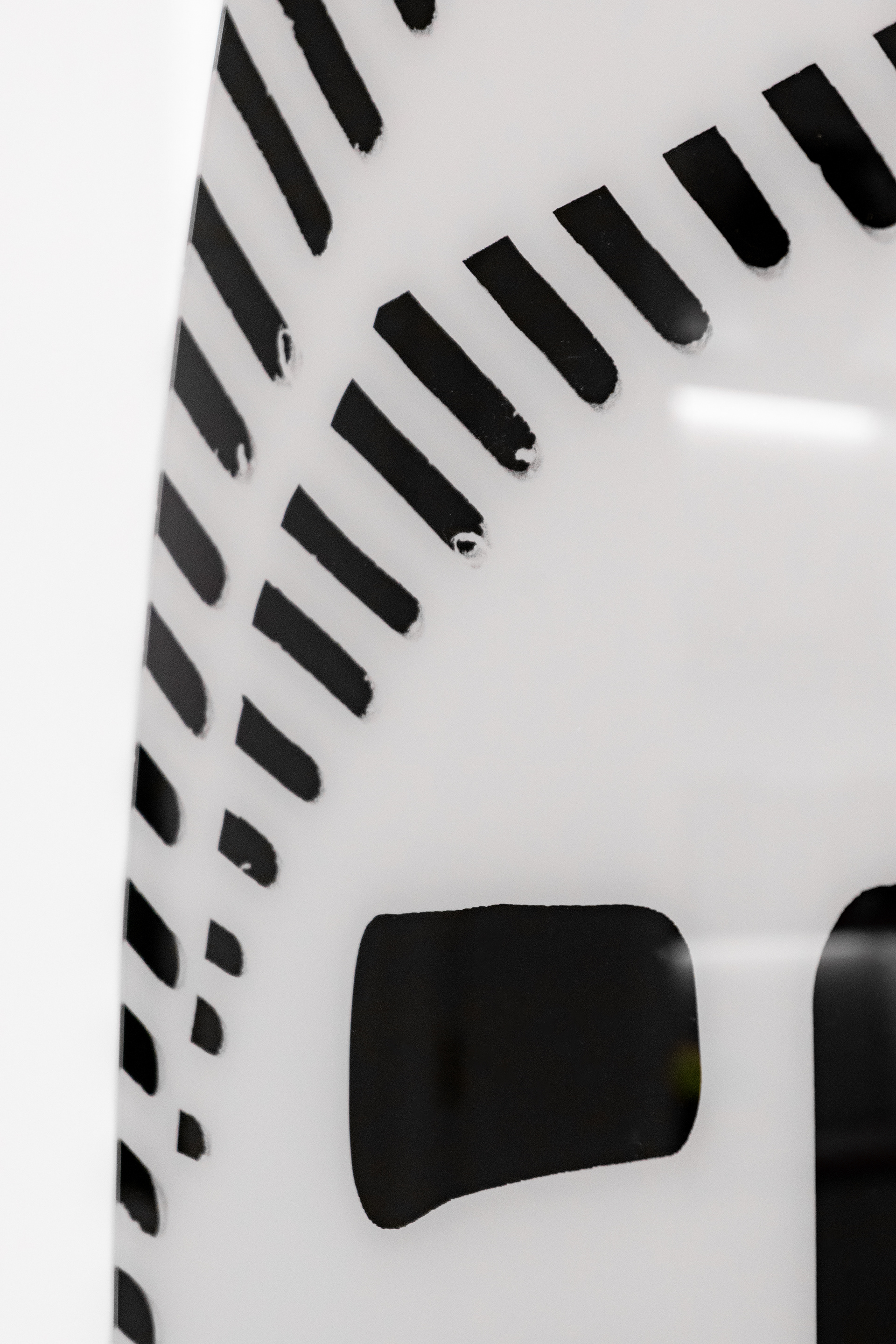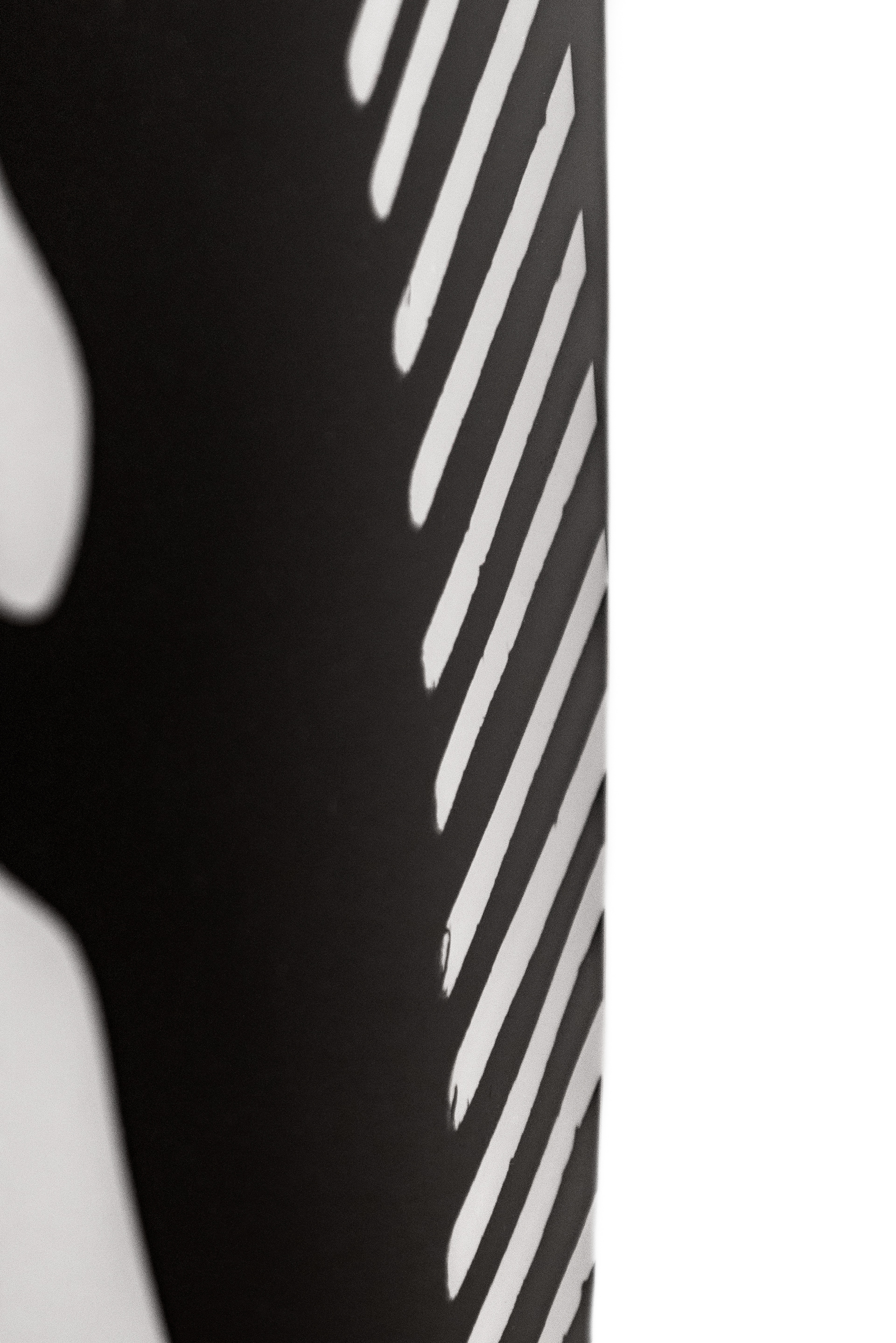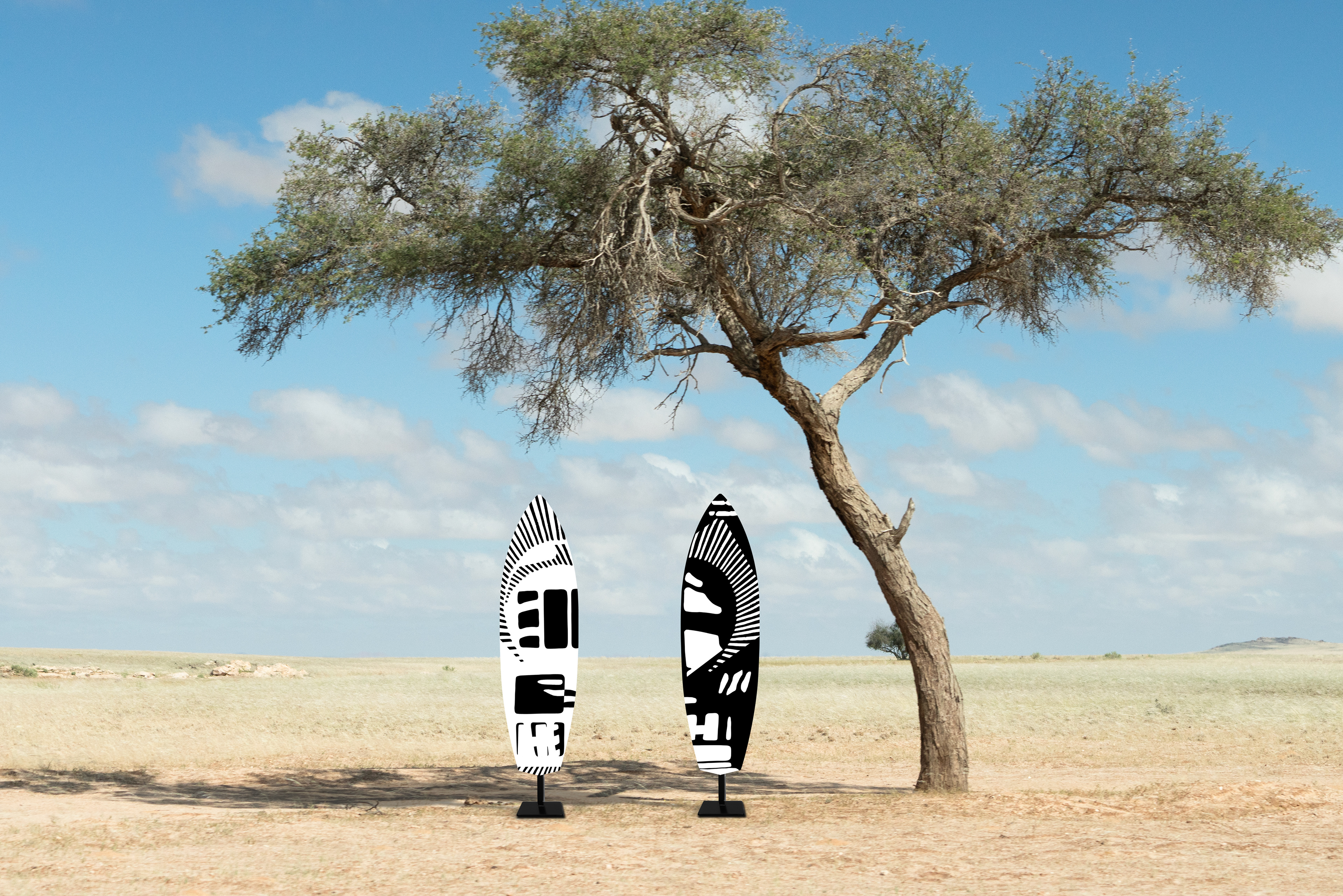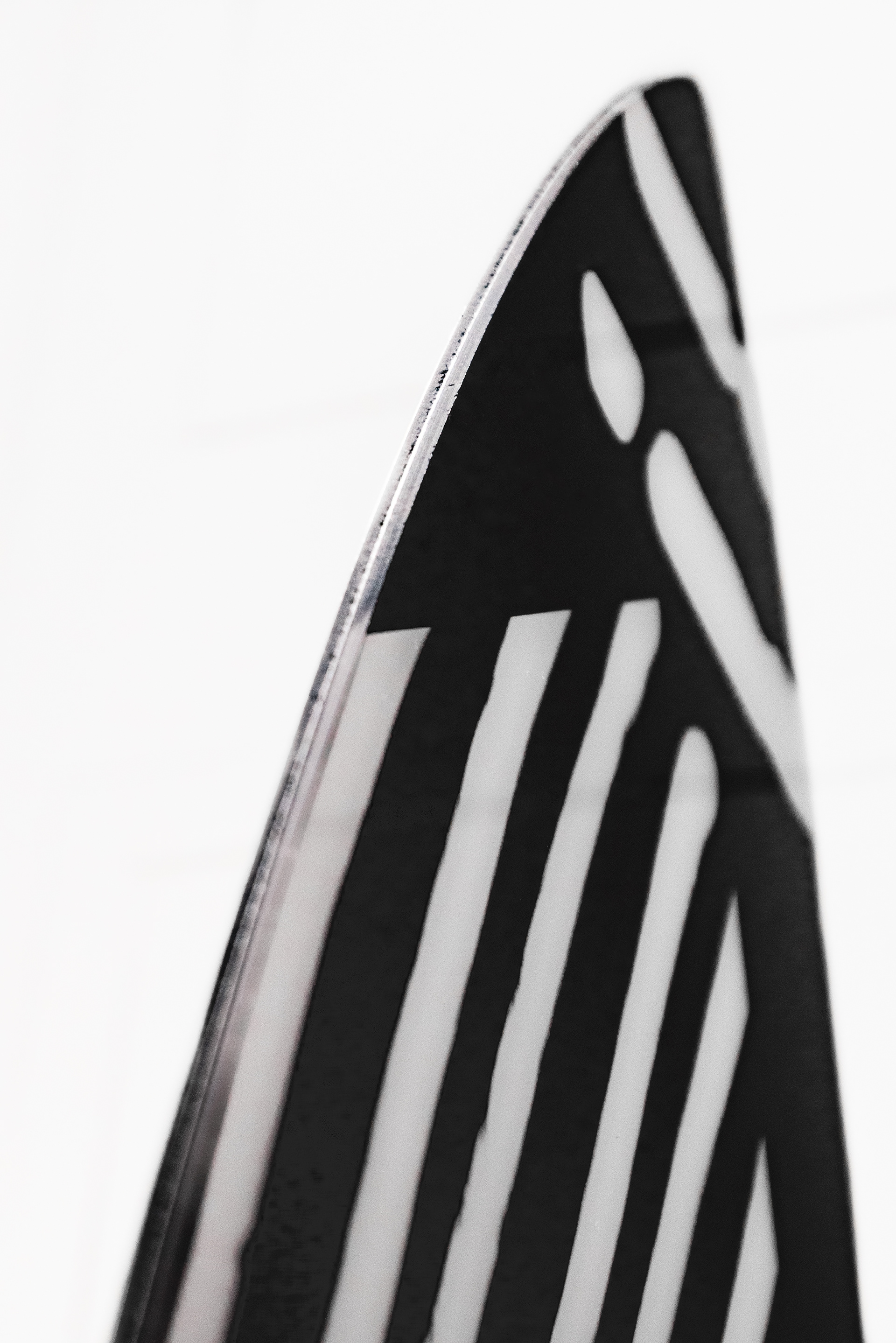 Beyond the surface is a collection of photographic sculptures in the shape of a surfboard. As the surfboard suggests forward movement and exploration we search within our imagery for a visual language that fits this notion of discovering new horizons. The surfboards exist in several different materials; acrylic glass, acrylic dibond, aluminum and wood. The laser engraved acrylic glass surfboards are set in a stainless steel mount, the other surfboards can be displayed on the custom black metal standard or placed without the standard against a wall or mounted on the wall. Whatever suits your wavelength.